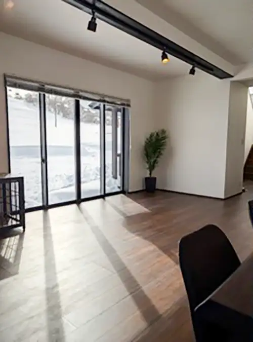 黒姫高原に誕生した「Doggo Village(ドッゴヴィレッジ)」は、愛犬と特別な滞在を楽しめる、わずか4棟の小さな村。全棟ペット同伴可で、専用駐車場を完備。雪あそびのあともそのまま宿泊できる快適な空間です。トレーラーハウス(D-01〜D-03)は、あえてベッドを置かず広々と使える設計で、自由な過ごし方が魅力。シャワールーム・IHキッチン・冷蔵庫など設備も充実しています。貸切キャビン(C-00)は最大11名まで宿泊可能で、ゲレンデビューのリビングや大きなアイランドキッチンが自慢。家族やグループでも快適に過ごせます。“NO DOG. NO LIFE.”な皆さまのご滞在を、心よりお待ちしています。